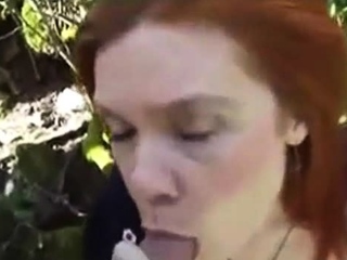 British slut sucks outdoors