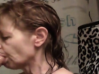 Long nails play with cock and blowjob under the shower