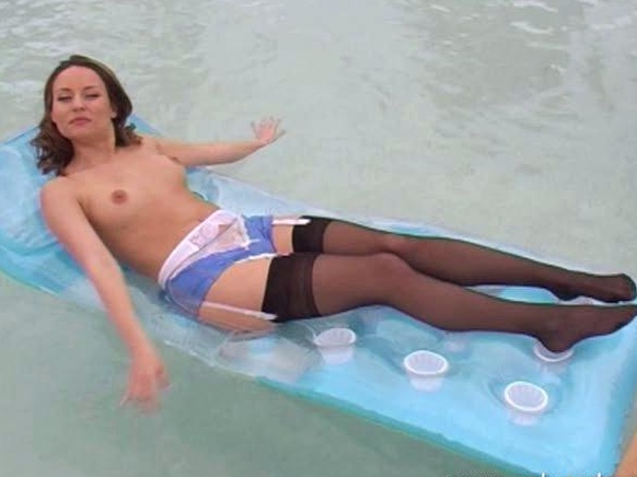 Sexy brunette wearing stockings masturbates webcam