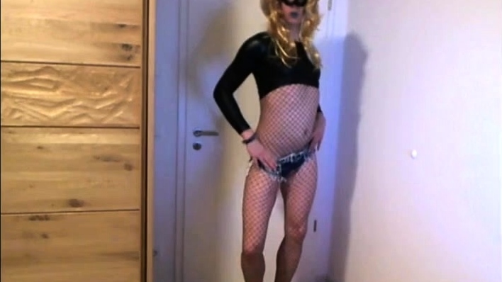 Blonde Crossdresser Teases on Webcam, Showing Off
