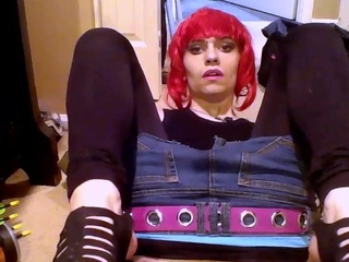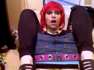 Emo Crossdresser Plays with Sex Toy on Webcam
