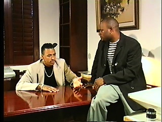 Two hung black stallions share a sexy ebony girl's tight slit